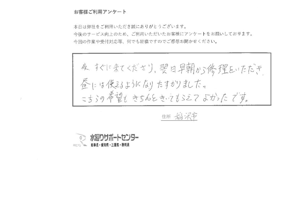 | 地域 | 愛知県稲沢市 S様 |