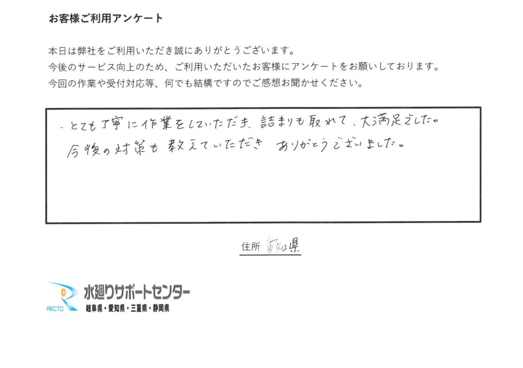 愛知県長久手市のお客様より、台所排水のつまり除去のご依頼をいただきました。
