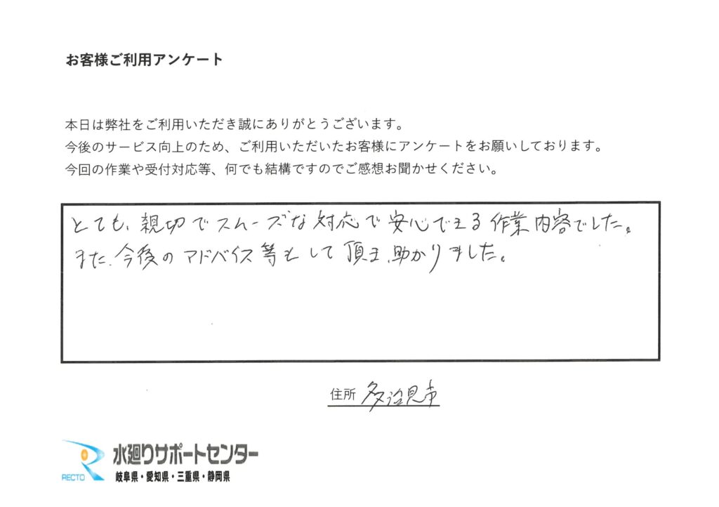 水廻りサポートセンターは多治見市の水道局より認定を受けた工事店「水道局指定業者」です。国が定めた基準に従い正しく施工できることを認められ非認定業者にはできない工事も可能です。