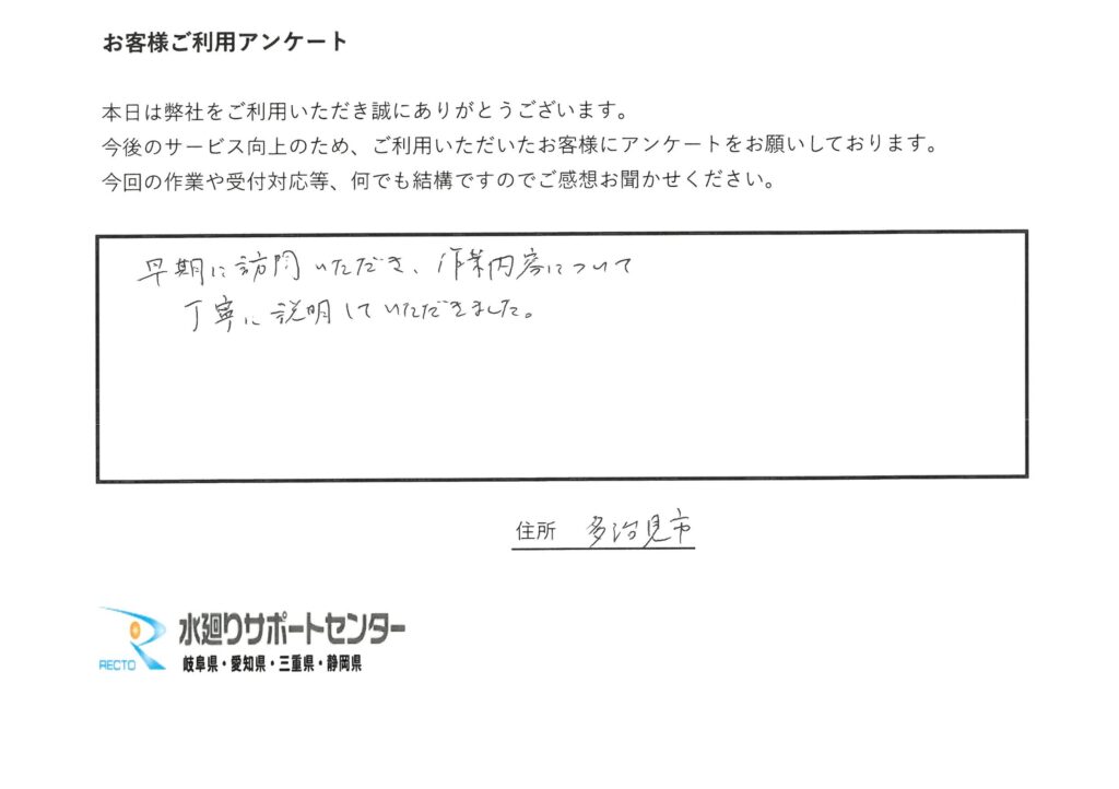 作業後も丁寧に説明していただき、最初から最後まで迅速に対応していただいたのですごく助かりました。