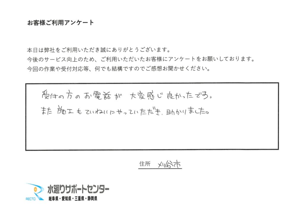 刈谷市のお客様の声