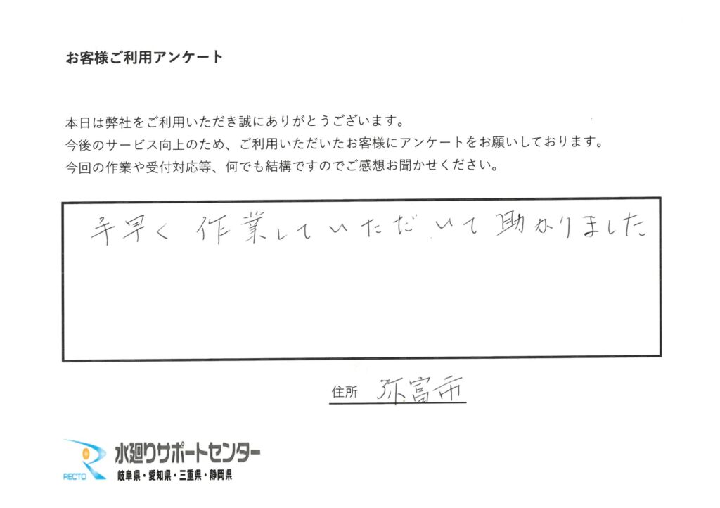 水廻りサポートセンターはベテランの水回りのスタッフが多数在籍しており、トラブルによっては最短15分ほどの作業でトラブルを解決できる場合もございます。