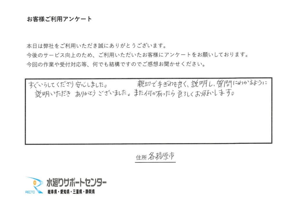 岐阜県岐南町のお客様より、台所のシンク下から異臭がするとのご相談をいただきました。収納扉を開けるたびにニオイが上がってくる状態で、日常生活にも支障が出ていたとのことです。現場には経験豊富なスタッフが伺い、まずは丁寧に状況を確認。排水ホースや防臭ゴムの劣化により、接続部から臭気が漏れていることが判明しました。そこで、排水アダプター・排水エルボ・ナット・パッキンを新しく組み直し、排水管も新設。さらにプレートを取り付け、しっかり密閉できる状態に改善しました。施工後は「ニオイがなくなった」と大変喜んでいただけました。自社HPでは、技術力が分かる他の施工事例も掲載していますので、ぜひご覧ください。