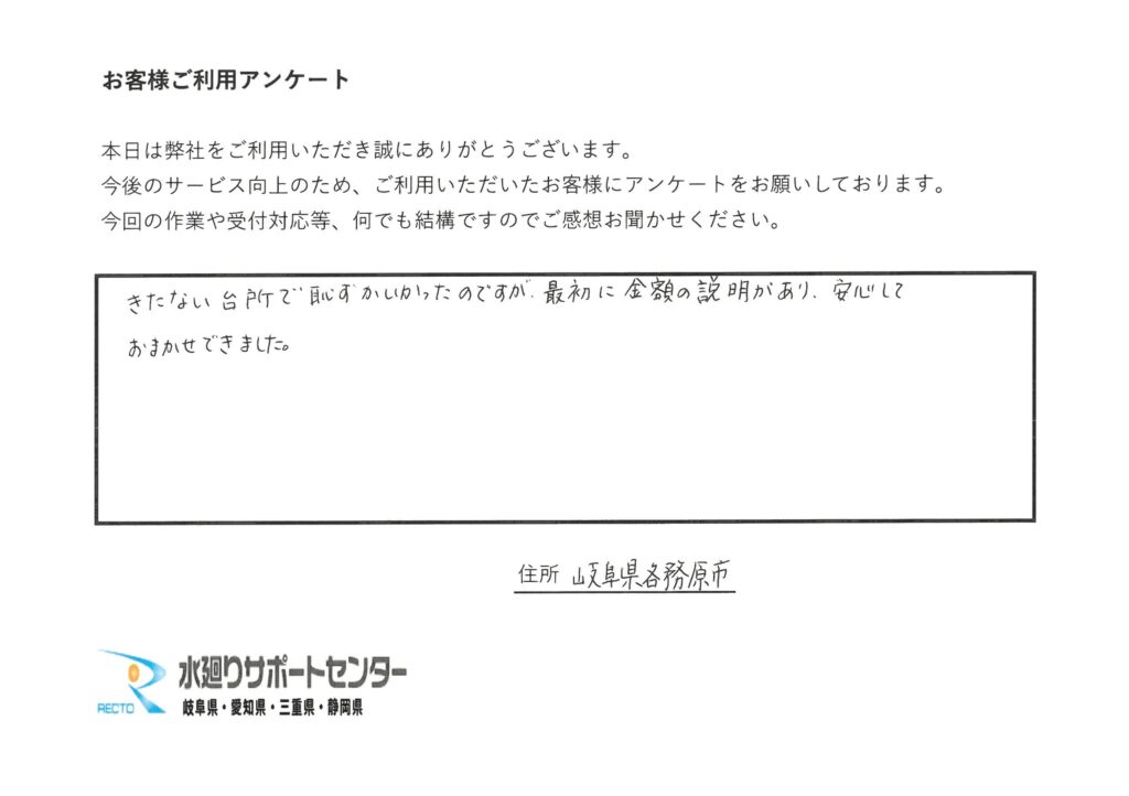 | 作業内容 | 台所の蛇口をシングルレバー混合栓に交換しました。 |