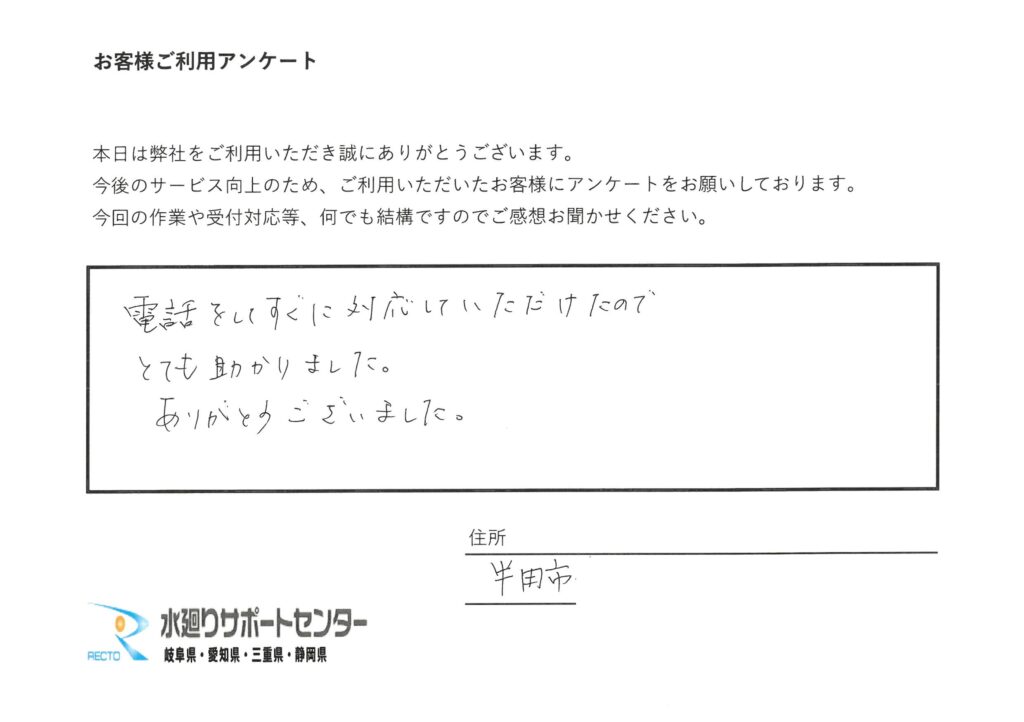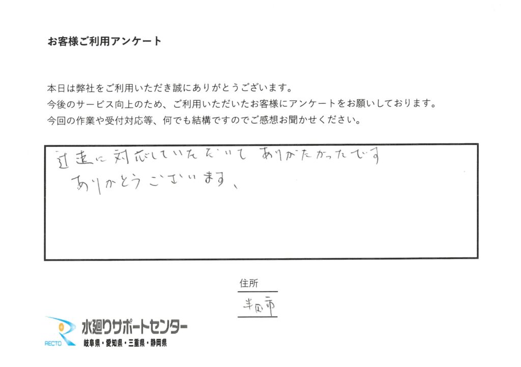 愛知県半田市のお客様よりご依頼をいただきました。排水管のつまりで作業も