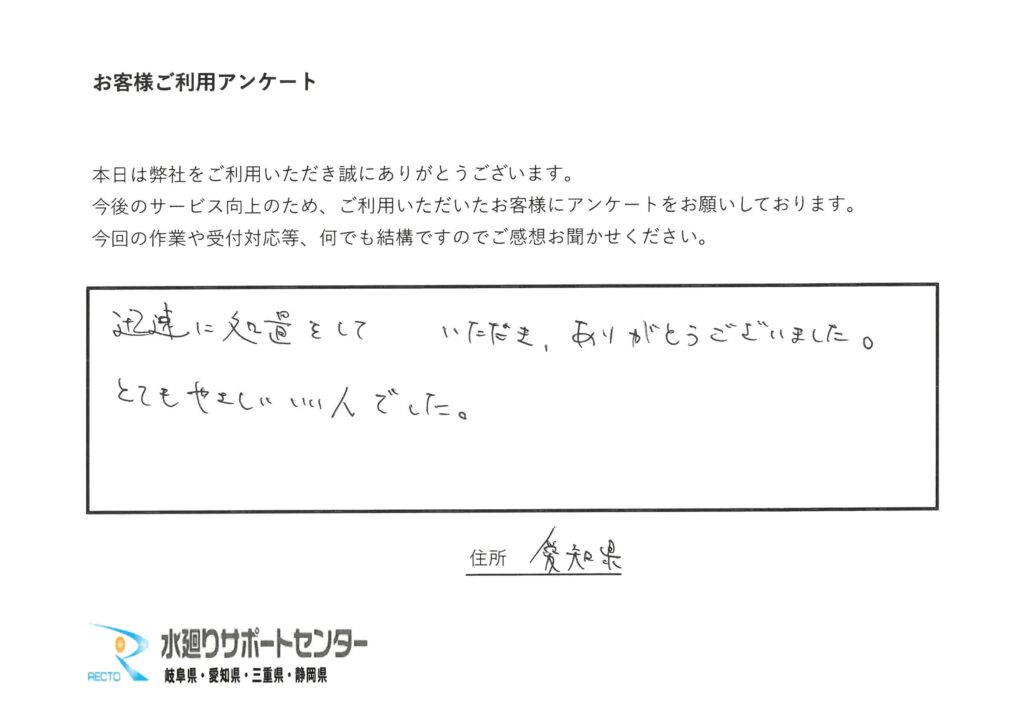 迅速に処置をしていただき、ありがとうございました。