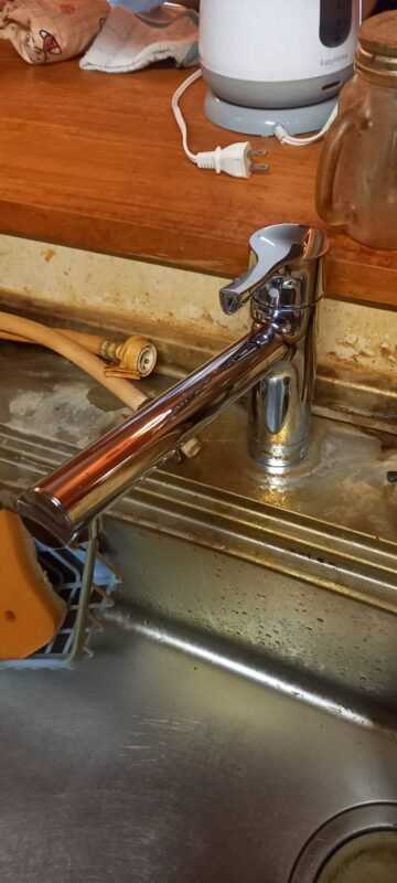 他の工事のために足場を設置していたとき誤って配管に接触、ヒビが入ってしまったそうです。割れていた部分を確認して破損した配管を交換、ワンタッチ継手で固定しました。最後に通水確認を行い、水漏れがないことを確認して完了。現在は正常に稼働しています。