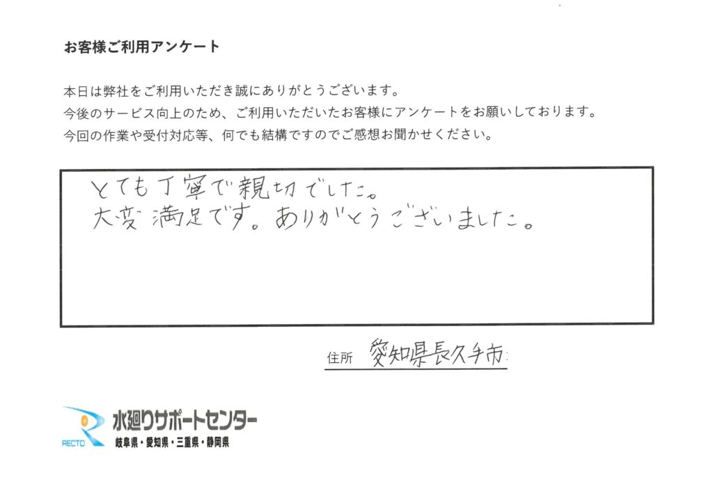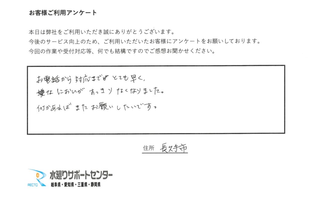 愛知県長久手市のお客様より、台所排水のつまり除去のご依頼をいただきました。
