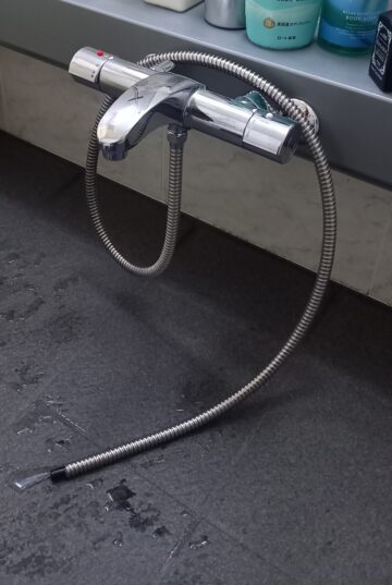 愛知県名古屋市のお客様より、浴室のシャワーホースが抜けてしまい、水が使えず困っているとご連絡をいただきました。確認すると、ホースの接続部分が劣化して水圧に耐えられなくなっている状態でした。今回は耐久性の高いTBV03401Jへの交換をご提案。取り付け後は水圧や接続の状態を細かく確認し、安心して使える状態に整えました。