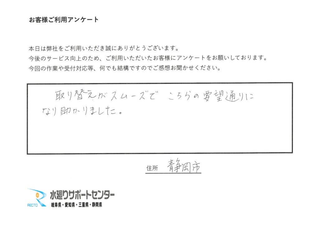 水廻りサポートセンターは静岡市の水道局より認定を受けた工事店「水道局指定業者」です。国が定めた基準に従い正しく施工できることを認められ非認定業者にはできない工事も可能です。