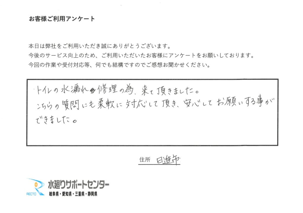 愛知県津島市のお客様より、トイレ床への水漏れのご相談をいただきました。