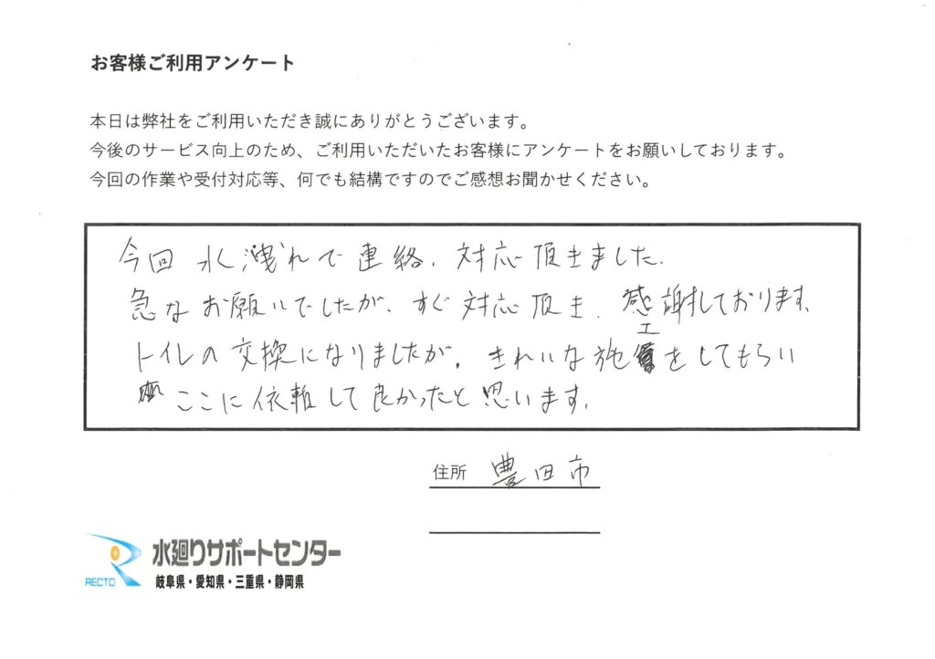 豊田市のトイレトラブル