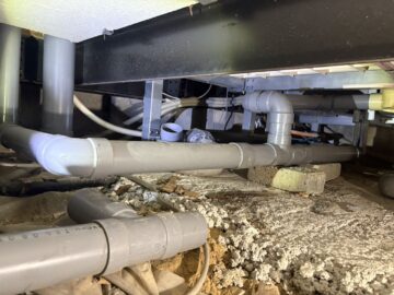 「浴室の排水にナイロンタオルを流してしまい詰まった」とご相談をいただきました。排水の流れが急に悪くなり、放置すると悪臭や逆流につながる恐れがあるため、まずは管内カメラで内部の状態を丁寧に確認しました。ワイヤーによるつまり抜きでは除去できなかったため、床下の既設排水管を一部撤去し、切り回し作業を行って異物を無事に取り除きました。作業後は排水管を確実に接続し、床下収納も元通りに復旧しています。水まわりのお悩みはご家庭によってさまざまですが、当社では一件一件に合わせた丁寧な対応を心がけています。お困りの際は、ぜひ当社へご相談ください。