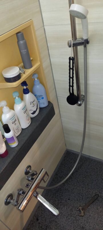 愛知県名古屋市のお客様より、浴室蛇口の温度調節ができず、ハンドルも固くて動かない、安全ボタンも戻らないとのご相談をいただきました。10年前に交換された水栓とのことで、経年劣化による不具合が重なっていた状態でした。今回は安心してお使いいただけるよう、TOTO壁付サーモスタット混合水栓(TBV03401J)へまるごと交換。操作性が大きく改善され、温度調節もスムーズになったと喜んでいただけました。また、壁付タイプは浴室空間をすっきり見せることができ、掃除もしやすいのが特徴です。水回りの不具合は突然起こることも多いため、気になる症状があれば早めの点検がおすすめです。自社HPでは他の施工事例もご紹介していますので、ぜひご覧ください。